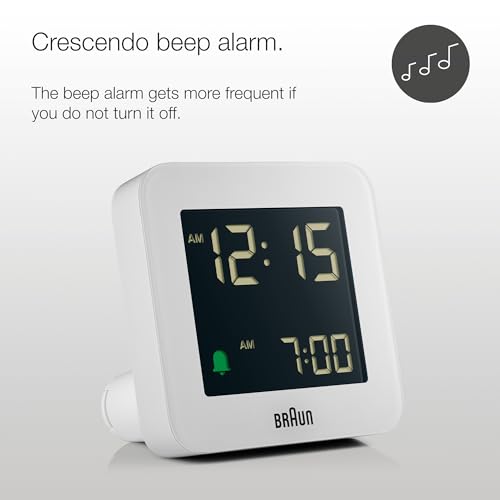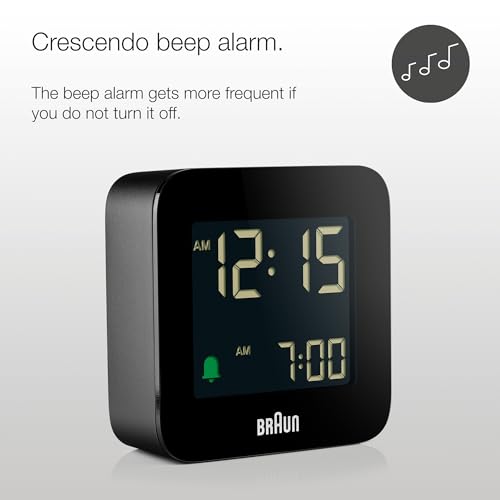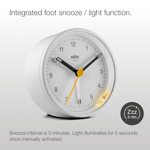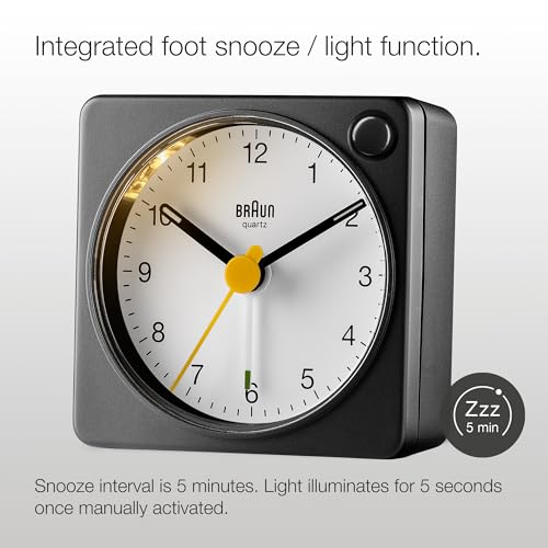 Braun Classic Analogue Travel Alarm Clock Black and White - BC02XBW