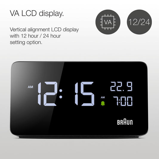 Braun Classic Analogue Alarm Clock Black - BC22B